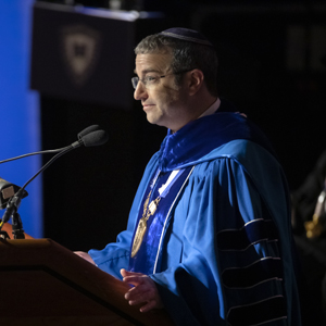 Friedman emphasized that his life has been deeply influenced by YU’s “teaching, its principles, its core values” and spoke about the many members of his family who attended YU, including his great-uncle, Dr. Pinchos Churgin, the founder of the Teachers Institute, and his wife, Tammy, an alumna of Stern College for Women.In charging the assembled graduates, Friedman encouraged that “whatever path you choose, bring to it a sense of purpose and a quest for meaning such that what you do matters more than just a paycheck. There’s nothing wrong with making a good living, but that alone won’t make you happy or bring us to a better place.”Friedman underlined the importance of basing one’s principles upon a commitment to truth: “Follow the truth wherever it leads. Embrace it, confront it, challenge it, and, if you don’t like it, make it better. But always live by the truth.”